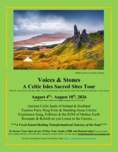 2026 Voices & Stones Celtic Isles Ireland Scotland Vocal Sound Healing Tour 8/4–8/18